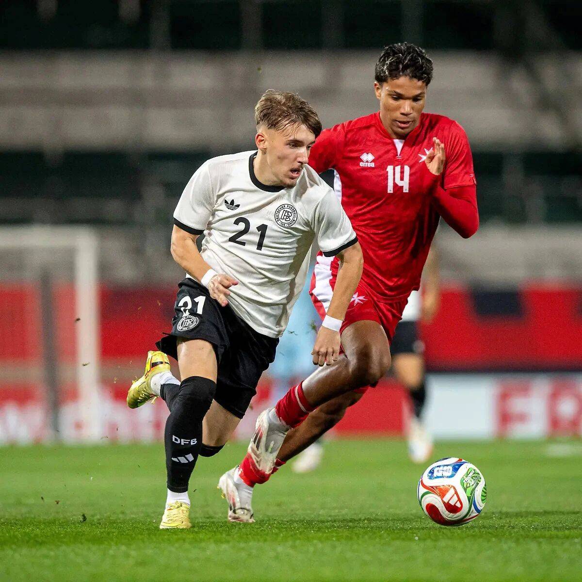 毫不夸张地说,与职业生涯同期的穆西亚拉相比,伦纳特·卡尔要抢眼许多。“小鹿斑比”穆西亚拉在处子赛季就入选了德国队,并搭上了2021年夏天欧洲杯的末班车。在《踢球者》最新公布的网络调查中,卡尔以高达70%的得票率入选了2026年世界杯“民意德国队”26人大名单。德国足球记者兼主持人陶菲克·哈利勒表示:“如果他足够成熟、足够优秀,并且能获得足够的出场时间,那就让他去(世界杯)吧!他的崛起,是德国人梦寐以求的。”